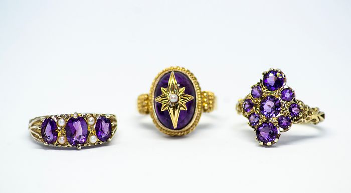 Victorian inspired Amethyst Gold Rings